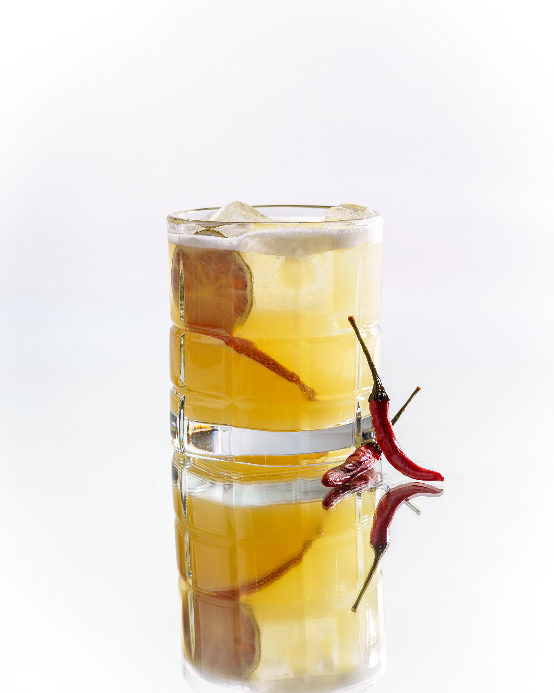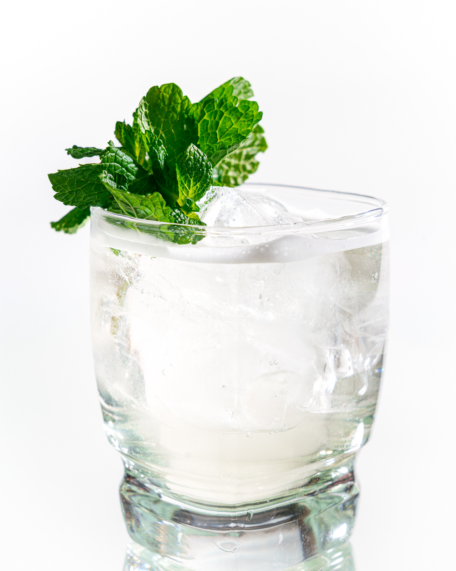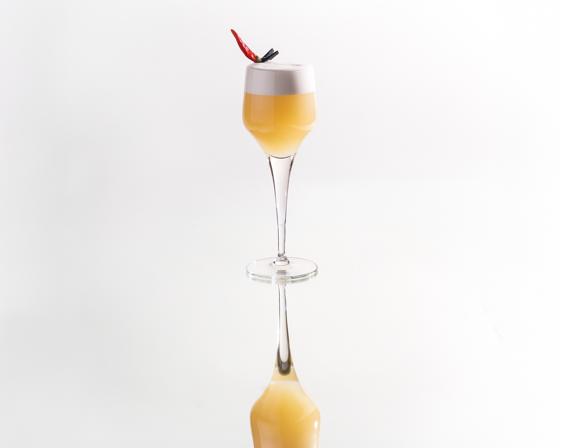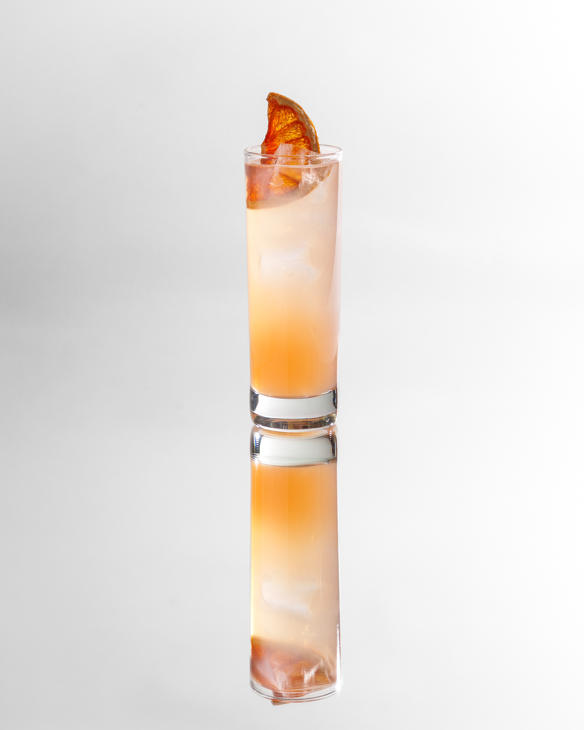 Cocktails shot on mirror. Beautiful pure white background delicious cocktails